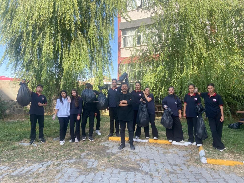 Coğrafya öğretmeni Faruk Polat rehberliğinde öğrencilerimiz, okul çevresinde temizlik çalışması yaparak çevre bilincinin önemine dikkat çekti. Etkinlikte öğrenciler, hem okul bahçesini hem de çevresini temizleyerek doğaya ve çevreye duyarlı bireyler olma yolunda örnek bir davranış sergilediler.